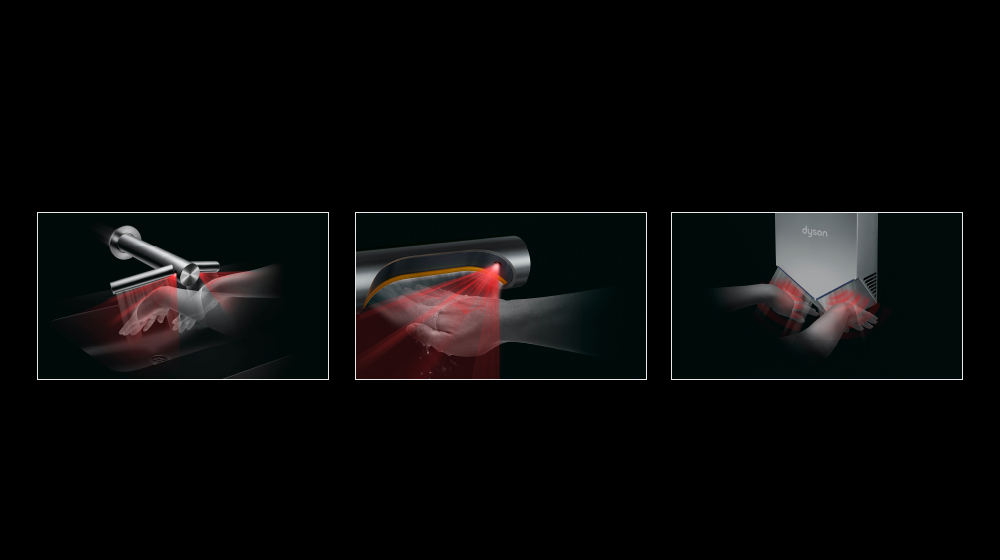 Los secadores de manos Dyson Airblade™ usan tecnología de sensores. Están diseñados para que el usuario tenga una experiencia higiénica sin hacer contacto con el secador.