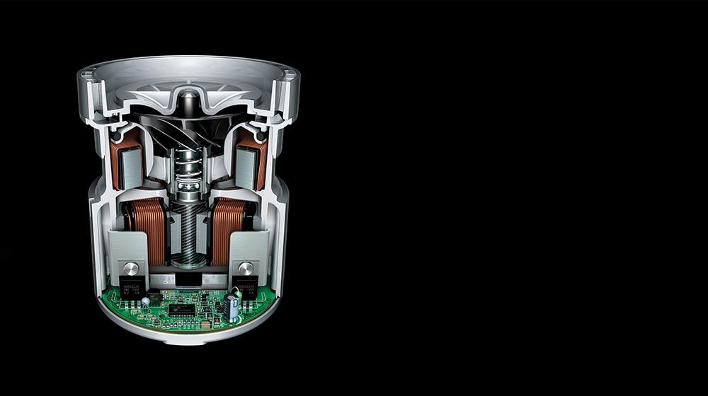 El motor digital Dyson V4 gira hasta rápido, generando así la potencia que hace posible la tecnología Airblade™.